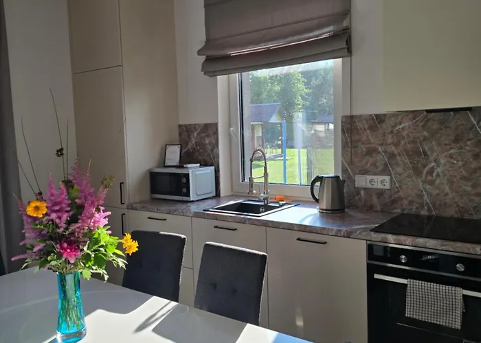 Расстояние до центра города составляет 4 км, а до аэропорта Паланга — 5 км. В 4 км находится Пляж в Паланге.